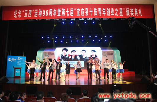 2015年4月28日,紀念“五四”運動96周年暨2015“尋跡·創(chuàng)業(yè)路”第七屆“寶應縣十佳青年創(chuàng)業(yè)之星”頒獎典禮在縣行政會議中心報告廳隆重舉行。寶應縣委書記、縣人大常委會主任王炳松,團市委書記佘俊臣,縣領導周玉寶、王友芳、顧長榮、張偉、夏征宇、楊洪國、王松年等出席活動。