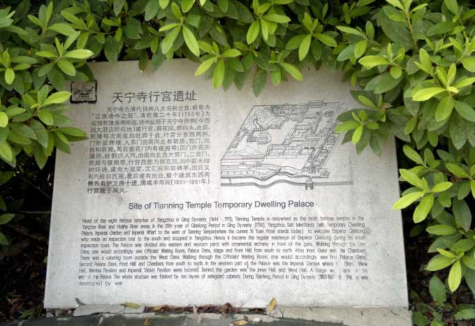 御馬頭的北面就是著名的天寧寺。乾隆第一次南巡到揚(yáng)州,駐蹕地是在南郊三汊河的高旻寺,進(jìn)城甚為不便。從第二次南巡始,就把天寧寺作為行宮,此后每一次乾隆南巡都要駐蹕天寧寺,每一次都要在天寧寺前的碼頭乘龍舟游覽瘦西湖,于是原本無名的天寧寺碼頭,從此便響了名,成了聞名遐邇的“御馬頭”。